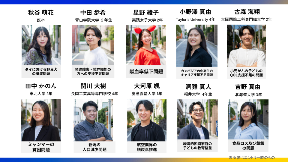 「中学三年生のころから食品ロスに対して活動してきて、初めて賞をもらうことができ、とても感慨深いです。このゼロイチへの参加をきっかけに、北海道から東京に来ることも増え、中学のころから自分が憧れていた方にも会う機会があったなど、ゼロイチプログラム自体に感謝をしています。」